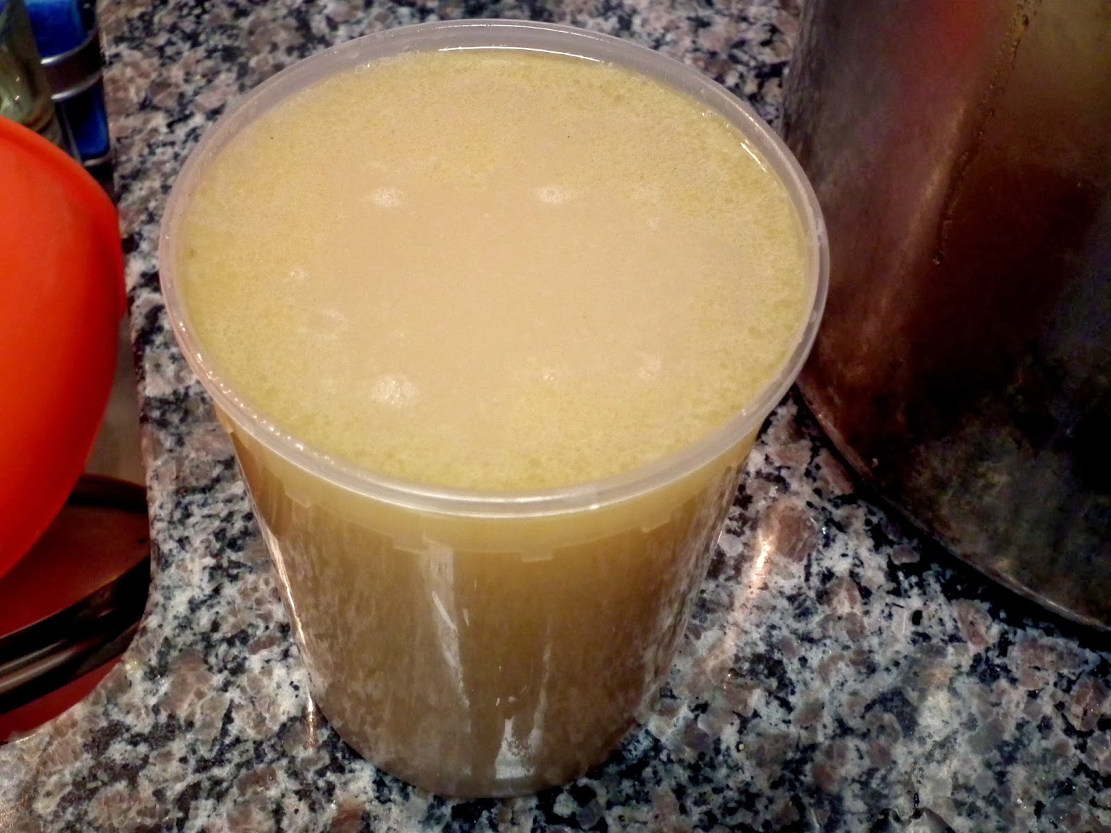 Since we knew we wouldn't be making soup right away, we put the turkey into a plastic bag, and put him in the freezer for safe keeping. We kept one small container of stock in the refrigerator, but the rest went into the freezer as well. So now we have the makings of a delicious soup!